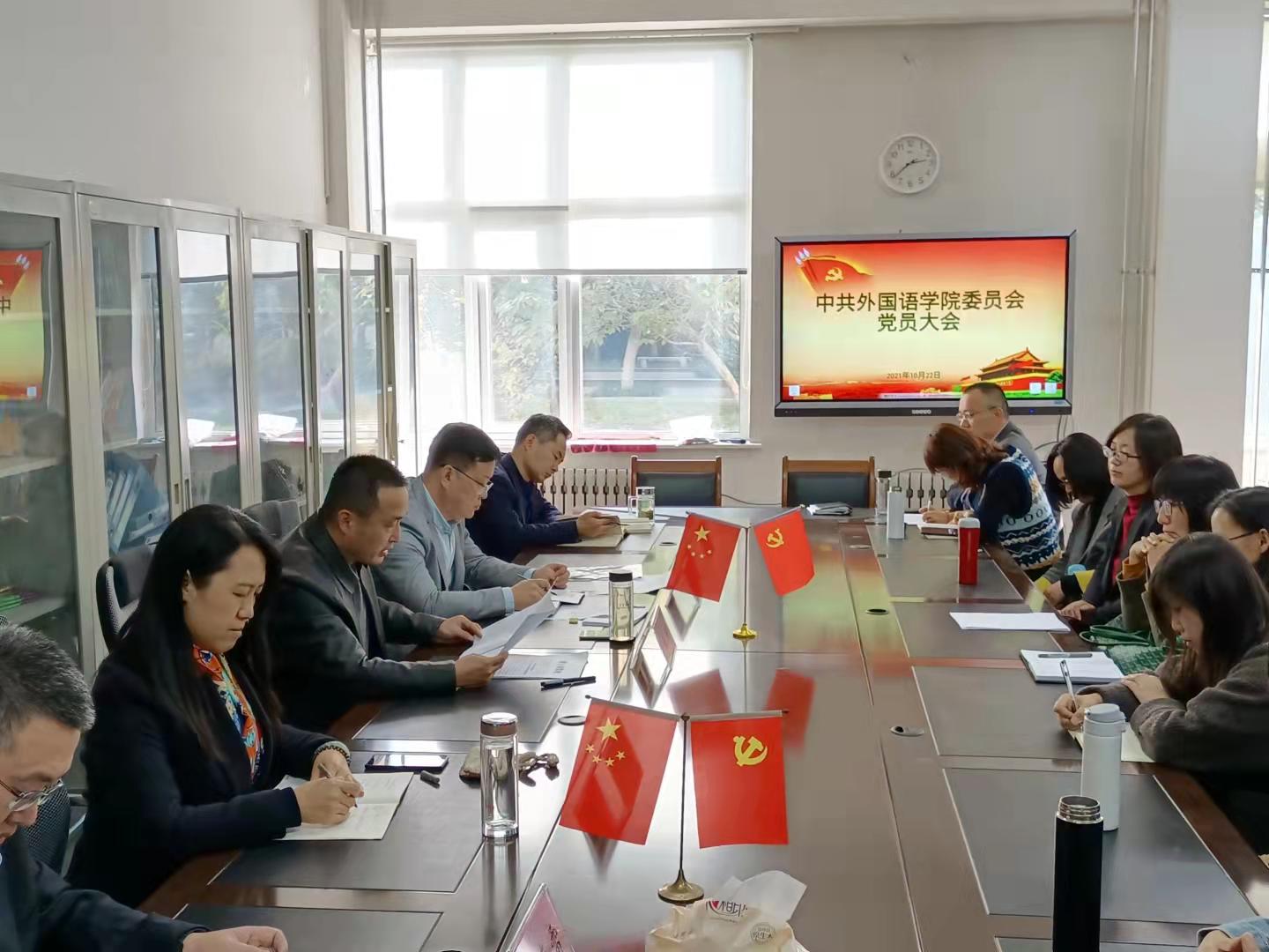 10月22日下午,外国语学院党委选举工作党员大会在三号楼一楼会议室举行,该院党委领导班子及全体师生党员参加,该院党委副书记许言强主持会议。