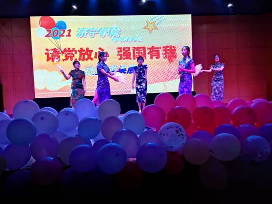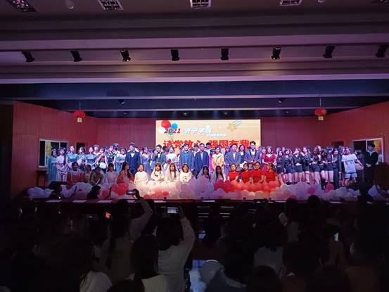晚会以习近平总书记在庆祝中国共产党成立100周年讲话中对广大青年的寄语拉开序幕,展示了各个社团独具特色的节目,电声乐社团演唱的《歌曲串烧》铿锵有力,活力四射,唱出了广大学子对祖国、对党的热爱;舞蹈、小品、歌曲、篮球和啦啦操表演等节目,抒发了新时代青年人对梦想的热烈追求,表现了面对新征程青年人的自信自励,展现了青年学子对新使命的勇于担当。程一飞和李蕾同学朗诵的《冰雪长津湖》,如同情景再现,引入入胜,仿佛在他们的带领下回到了长津湖的战场,他们凭借这个节目荣获山东省吟诵大赛一等奖的好成绩。晚会在学生会干部大合唱《那个年纪》中落下帷幕。