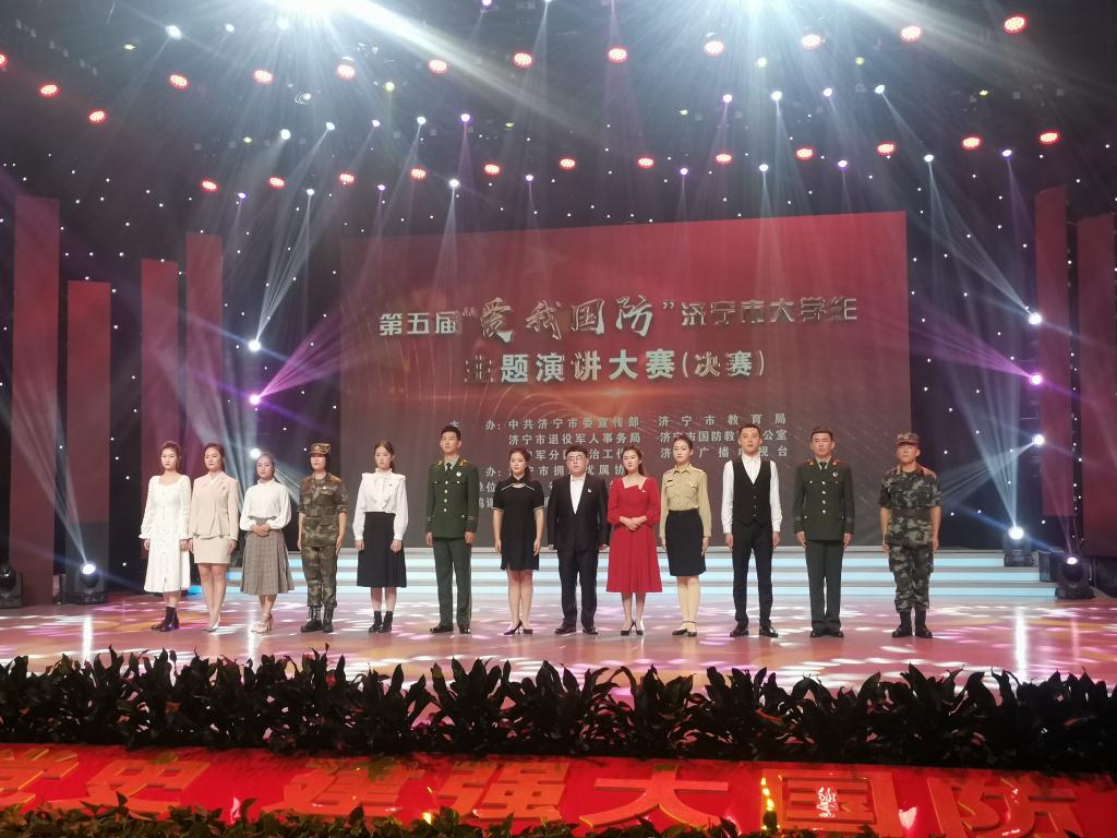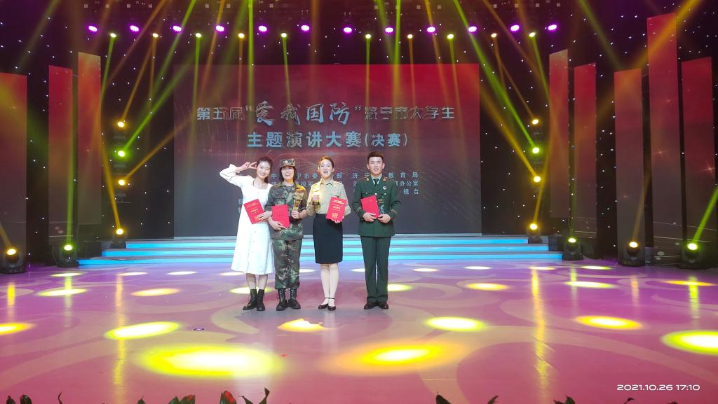 10月26日,由济宁市委宣传部、市国防教育办公室、军分区政治工作处、市教育局、退役军人事务局、济宁广播电视台以及拥军优属协会联合举办的第五届“爱我国防”济宁市大学生主题演讲大赛决赛落下帷幕,人文与传播学院2020级汉语言文学专业学生韩鑫钰以96.908的高分获得大赛一等奖第一名,2019级网络与新媒体专业学生辛灵获得优秀奖,为学校赢得荣誉。