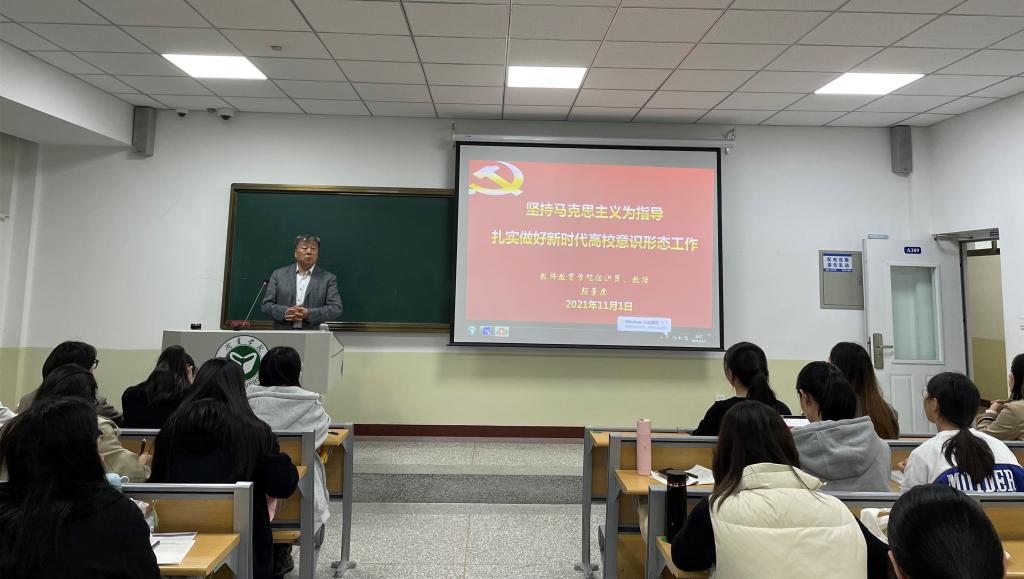 11月1日下午,教师教育学院专职组织员颜景虎在2号楼C309为党员及党员发展对象作意识形态专题报告,报告采用线上与线下相结合的方式进行,共25名党员、63名发展对象参加。