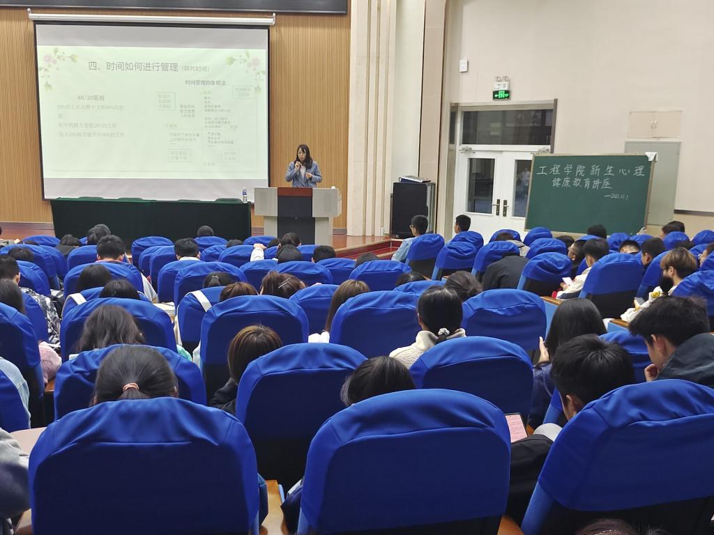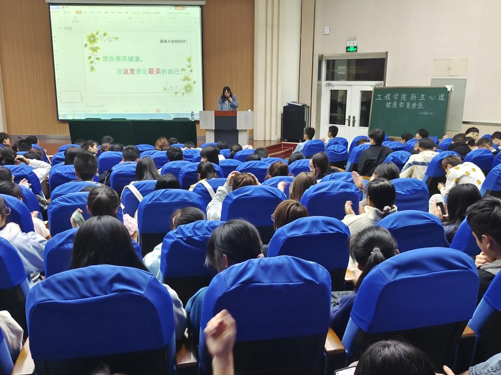 为缓解学生适应压力,增强学生心理素质,预防心理问题的产生,11月1日下午,工程学院邀请学生工作处刘小玲老师在3号楼报告厅作了题为“打开心理之窗,逐风破浪追逐梦想”的心理健康教育讲座。该院2021级全体新生聆听了讲座。