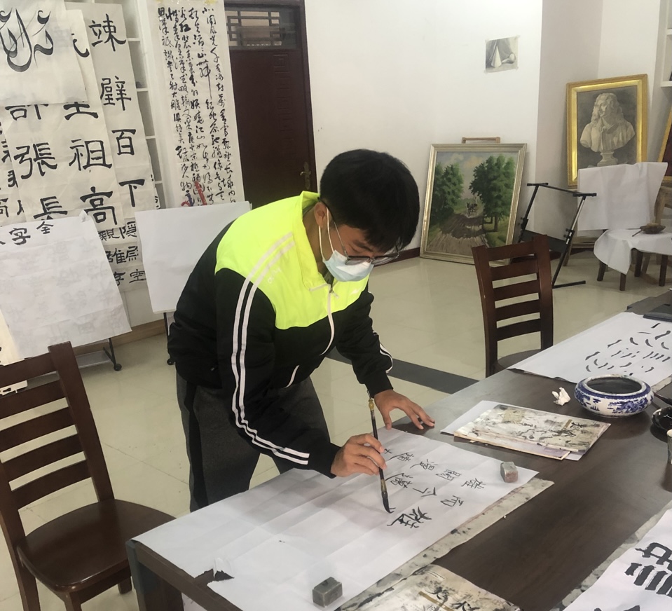 图片:体育学院王震同学在上书法课