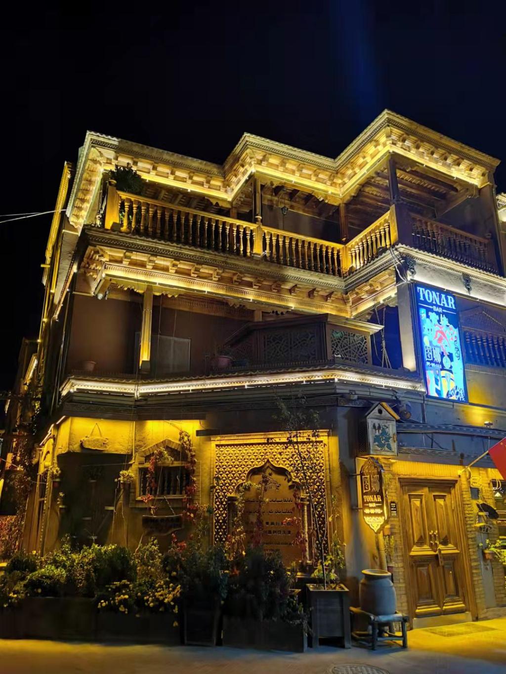 住在客栈的旅行人,人来人往的不再是过客,而是一眼万年的归人,用眼中的亿万像素,记录着古城夜色的生生不息。“所以南北的路不再漫长,灵魂不再无处安放。”驻唱歌手微微沙哑又饱含深情的歌声彰显了这座厚重的古城的另一种存在,让人想从日复一日的情形中抽离,难得地沉醉一回。这就是喀什印象。属于古城的记忆篇章,一曲终了,斯人还乡,那属于古城夜晚的桥段,便勾起人们一生的向往。