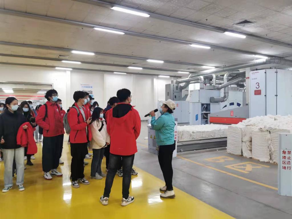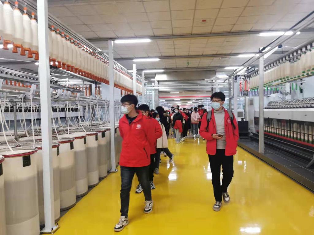 支教团首先集体观看了关于企业介绍的纪录片,然后,同学们在公司负责人的带领下,兴致勃勃地走进生产车间,参观了棉纱生产流程。宽敞明亮的车间、现代化的生产设备、高效有序的管理给同学们留下深刻印象,拓展了同学们认识社会的途径。