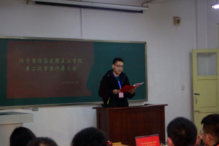 王玉翔代表第一届学生会向大会作了题为《不忘初心不负始终 在特色鲜明的应用型大学建设中谱写学生工作的篇章》的报告,全面回顾和总结马克思主义学院第一届学生会一年来学生工作开展情况,坚定理想信念,勇于开拓进取,砥砺成长成才,积极进行自我反思。
