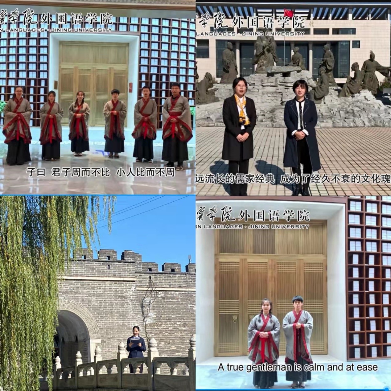 2021年儒家经典跨语言诵读大会作品征集于2021年11月11日结束,该活动由教育部中外语言交流合作中心支持,由中国孔子基金会和山东省教育厅等单位主办。自作品征集以来,国际教育学院积极组织,外国语学院领导高度重视。外院领导通过线上线下多种渠道鼓励、支持和指导师生组建中英、中俄和中日儒家经典诵读团队。外国语学院教师李霄露、颜冬梅、范莉、李丽、程晨、张金霞和刘义翠分别带领学生,以饱满的热情踊跃参与,从选择译文文本,纠正诵读语音,到设计立意,制作视频,处处皆体现了外院教师与学子的热情。