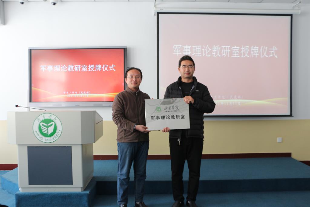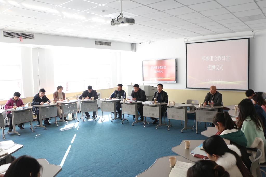 授牌仪式上,刘勇宣读了我校“关于成立军事理论教研室的通知”,公布了军事理论教研室成员名单,明确了军事理论教研室主要职责。