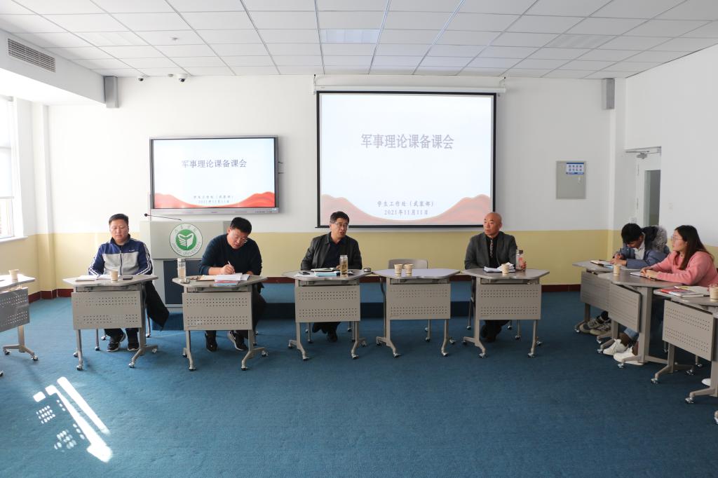备课会上,教务处教学科科长陈龙根据军事理论课的教学任务和教学计划,进行了课程安排;数学与计算机应用技术学院辅导员陈轶洋为大家上了军事理论示范课;李和平分享了军事理论课教学的经验和心得体会;任课教师围绕怎样开展军事理论课教学、怎样上好军事理论课、怎样创新教学形式等方面进行了探讨,并对教学中遇到的问题,交流了心得,提出了见解。