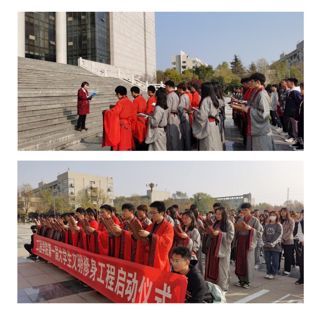 为深入学习贯彻落实党的十九届六中全会精神,提升青年学生文明礼仪修养,推进学生综合素质发展,构建文明和谐的美好校园,11月19日下午,工程学院第一届大学生文明修身工程启动仪式在图书馆前杏坛广场举行。该院党委书记唐秋晶作了动员讲话,党委副书记韩西莲宣读了文明修身工程具体实施方案,全体辅导员、全体团委学生会成员及学生代表150余人参加了仪式。