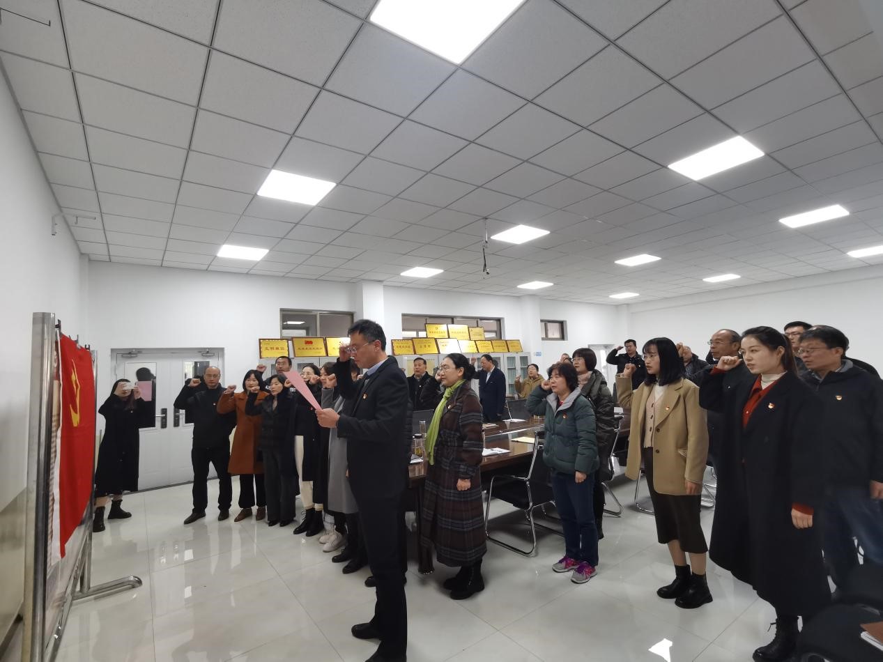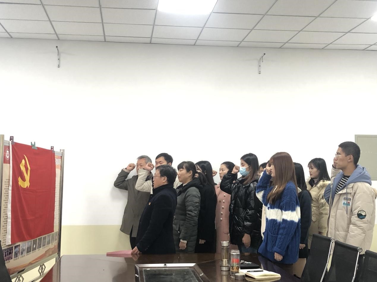 全体党员面向鲜红的中国共产党党旗,举起右拳,庄严宣誓。铿锵有力的誓言,表达了一名共产党员对中国共产党的无限忠诚和听党话、感党恩、跟党走的坚定决心。