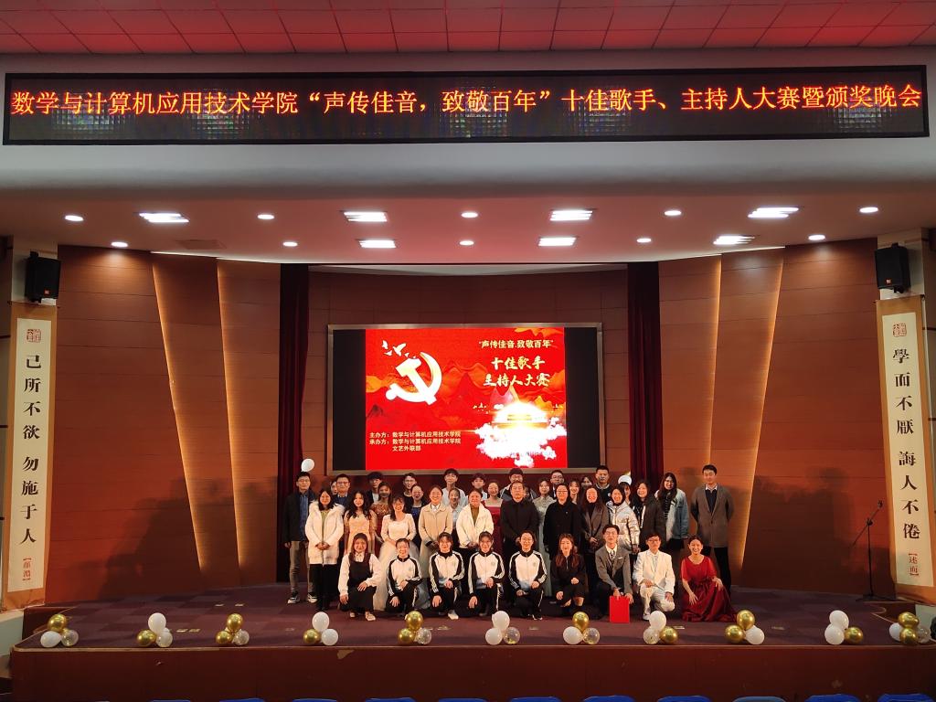 风华映照千秋伟业的辽阔,奋斗的学子唱响筑梦的欢歌。11月30日晚6:30,数学与计算机应用技术学院“声传佳音,致敬百年”双十佳汇报演出在理科楼报告厅拉开帷幕。