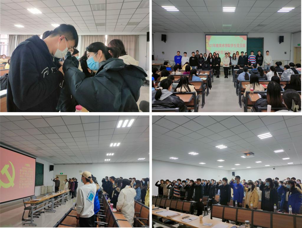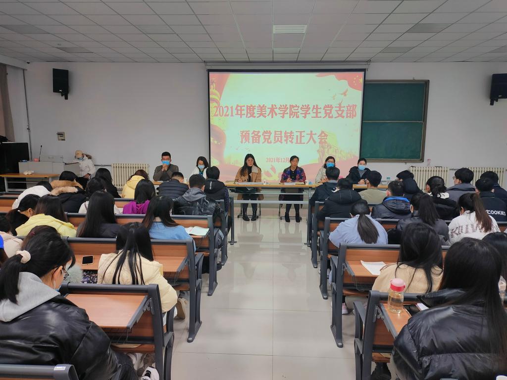 12月3日,美术学院学生党支部于济宁应用型人才培养基地B3213召开预备党员转正大会暨新党员入党宣誓仪式。美术学院党委副书记孔翠、组织员张琦列席大会,会议由学生党支部书记张笑主持。