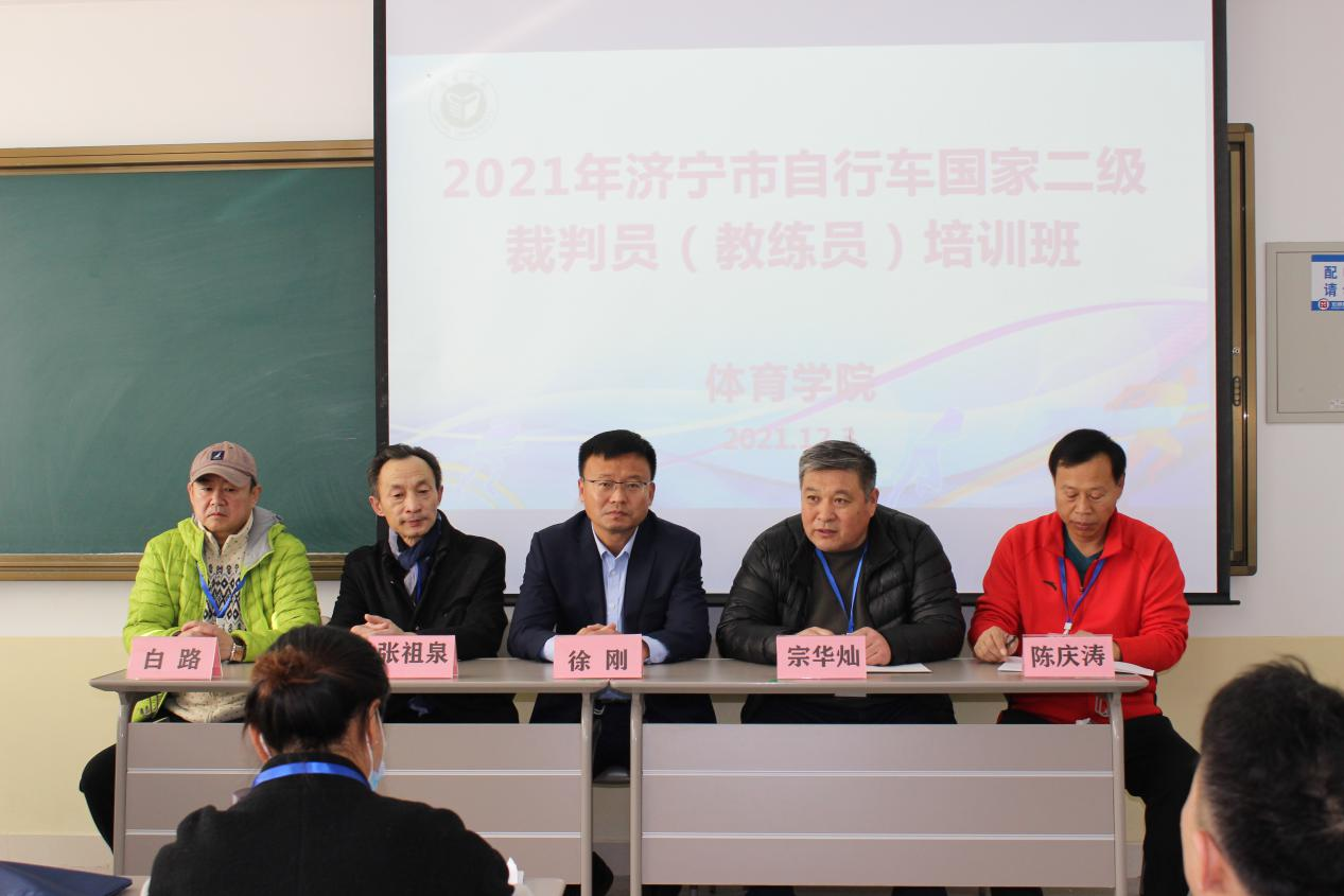 12月3日,济宁市自行车二级裁判员(教练员)培训开班仪式在我校9号楼C304举行。体育学院副院长徐刚、济宁市自行车运动协会主席宗华灿等相关人员参加。仪式由济宁市自行车运动协会秘书长陈庆涛主持。