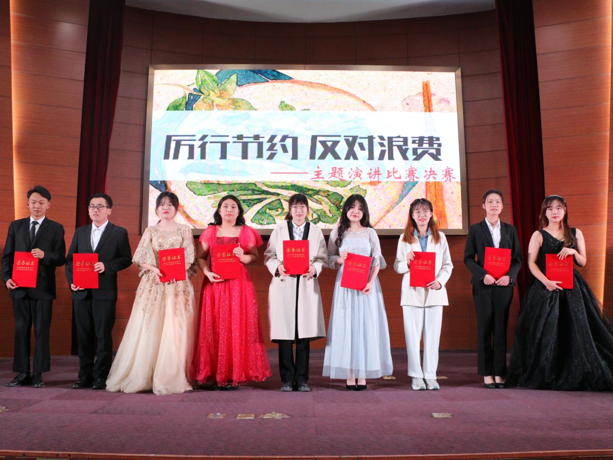 本次主题演讲共有9名选手进入决赛。演讲过程中,参赛选手借助音乐、PPT演示文稿等多种方式生动形象地向大家阐释了厉行节约、反对浪费的重要意义,声情并茂的演讲赢得了观众们的阵阵掌声。