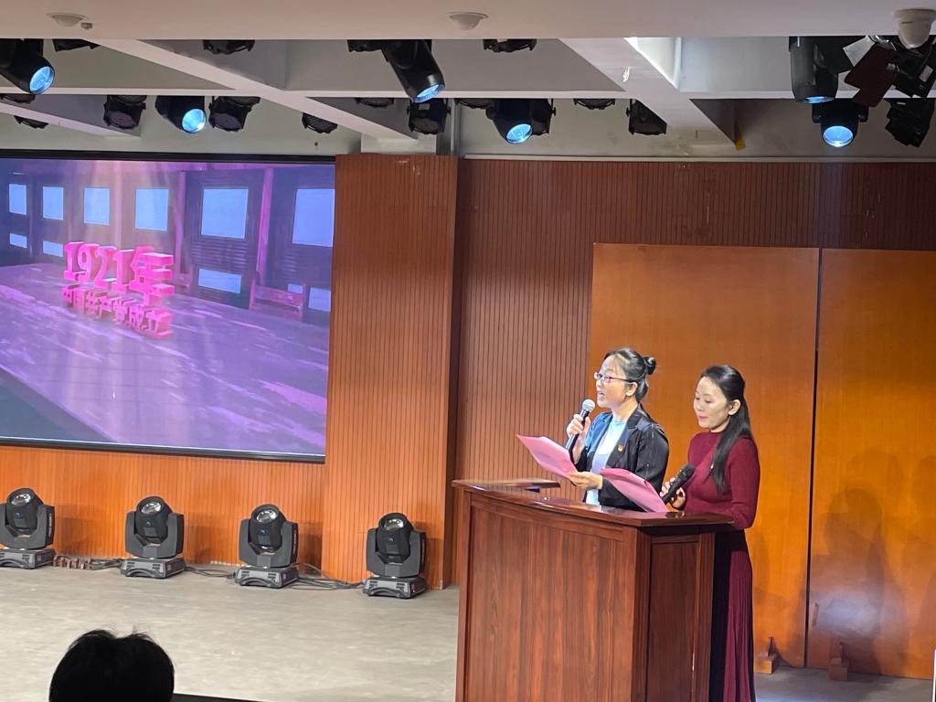 主题党课开始,现场观众全体起立高唱《中华人民共和国国歌》,拉开了整堂党课的序幕。随后,音乐学院优秀教师党员袁文和李雪锦正式开讲。本次党课围绕开天辟地、峥嵘岁月;革命建设、卫我河山;改革开放、春风浩荡;不忘初心、走向复兴等四个阶段展开,一首首音乐作品谱写出了一部中国共产党百年奋斗史诗。