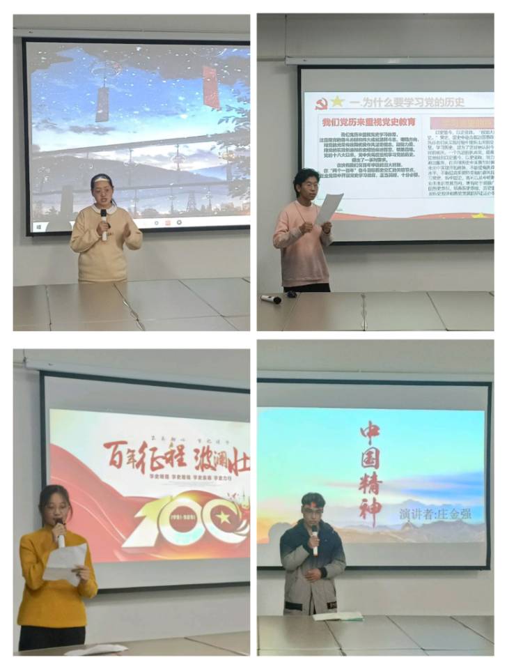 比赛设置班级初赛、学院决赛两个环节。经过前期积极宣传,同学们报名踊跃、竞争激烈。有30位选手通过初选进入复赛,最终15名选手脱颖而出进入决赛,角逐最后的一、二、三等奖。决赛中,选手们围绕建党一百周年主题,选取党史重大历史事件、中国共产党伟大精神谱系等内容进行演讲。内容积极向上,语言标准流畅,情感真挚强烈。同时采用PPT、背景音乐、视频等形式来为自己的演讲锦上添花,赢得了观众们阵阵掌声。演讲结束后,由评委老师进行点评,选手们也纷纷表示受益匪浅。
