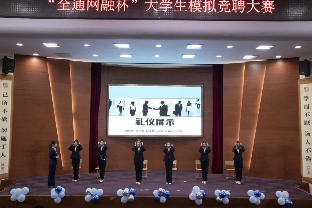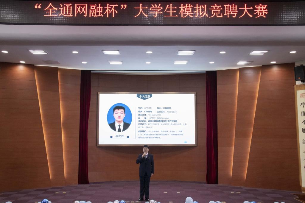 12月14日晚,由校团委主办,儒商学院团委、大学生职业发展协会承办,山东全通网融协办的“扬就业之帆,启梦想之旅”大学生模拟竞聘大赛在理科楼报告厅举行。校团委书记马新蕾,儒商学院党委书记齐慧丽,学生工作处副处长刘勇,山东全通网融副总经理孟东海、教学总监杨冰,数学与计算机应用技术学院团委书记冯秉政、儒商学院团委书记袁芬出席活动,各二级学院学生代表观看了比赛。