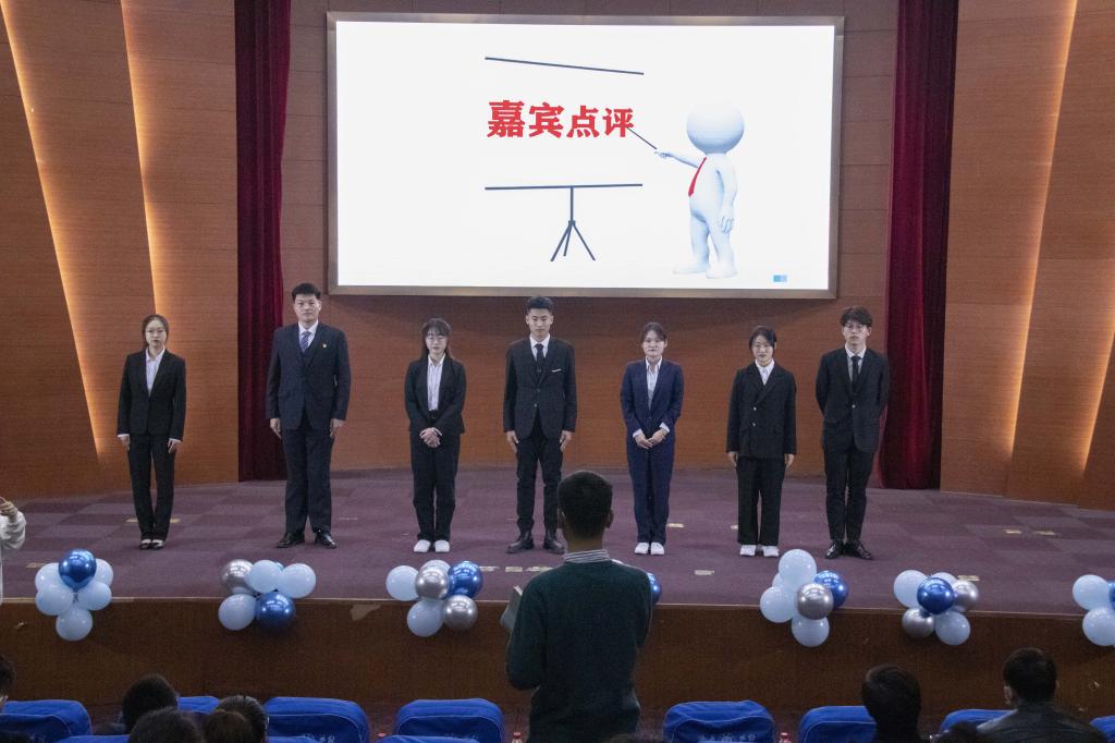 此次模拟竞聘大赛设置了文秘文书类、IT工程类、新闻传播类、金融经济类、化学化工类、机械工程类、涉外事务类、艺体类、教师等应聘岗位,经过前期自主报名、简历评比和模拟面试等考核环节,共有7位竞聘者脱颖而出,晋级决赛。决赛分为“自我介绍”、“竞聘演讲”、“模拟面试”三个环节,在“自我介绍”环节,7位选手通过短视频展现了个人基本信息和良好的青春风貌;在“竞聘演讲”环节,各位选手从求职意向岗位出发,结合学习经历、实习实践、兴趣特长等方面内容,全面展现自身的综合实力;在“模拟面试”环节,选手们围绕评委们提出的职场实际问题,找准角色定位,积极阐述观点,自信对答,思路清晰。随后,山东全通网融就业部主任田延聘对参赛选手的思维能力、表达能力、专业素养和岗位匹配等方面进行了精彩点评。