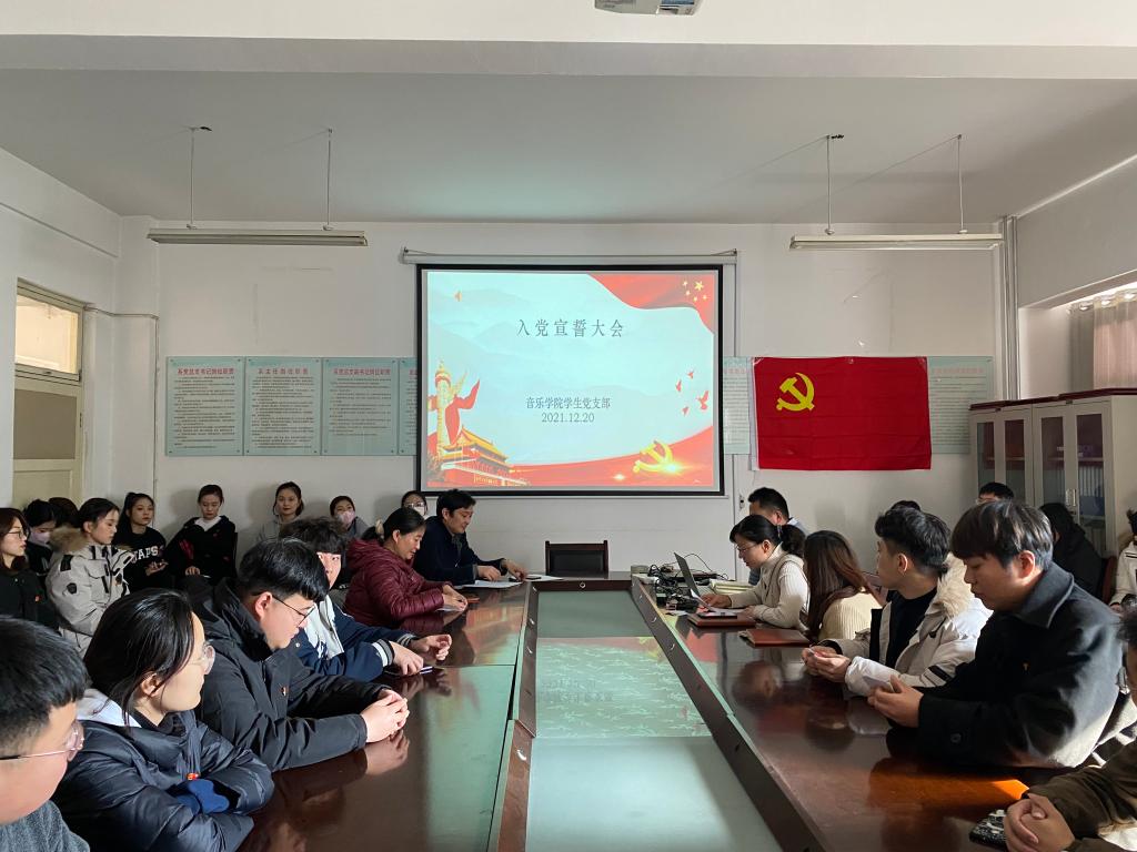 12月20日,音乐学院2021年度新党员入党宣誓仪式在二楼会议室举行。该院党委副书记蒿鹏、全体学生党员和入党积极分子代表参加仪式,宣誓仪式由学生党支部书记岳娜主持。