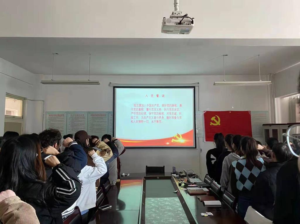 此次入党宣誓仪式共安排六项议程。首先由支部宣传委员牛培腾向新党员颁发了党徽。随后组织委员张倩宣读完预备党员批复。
