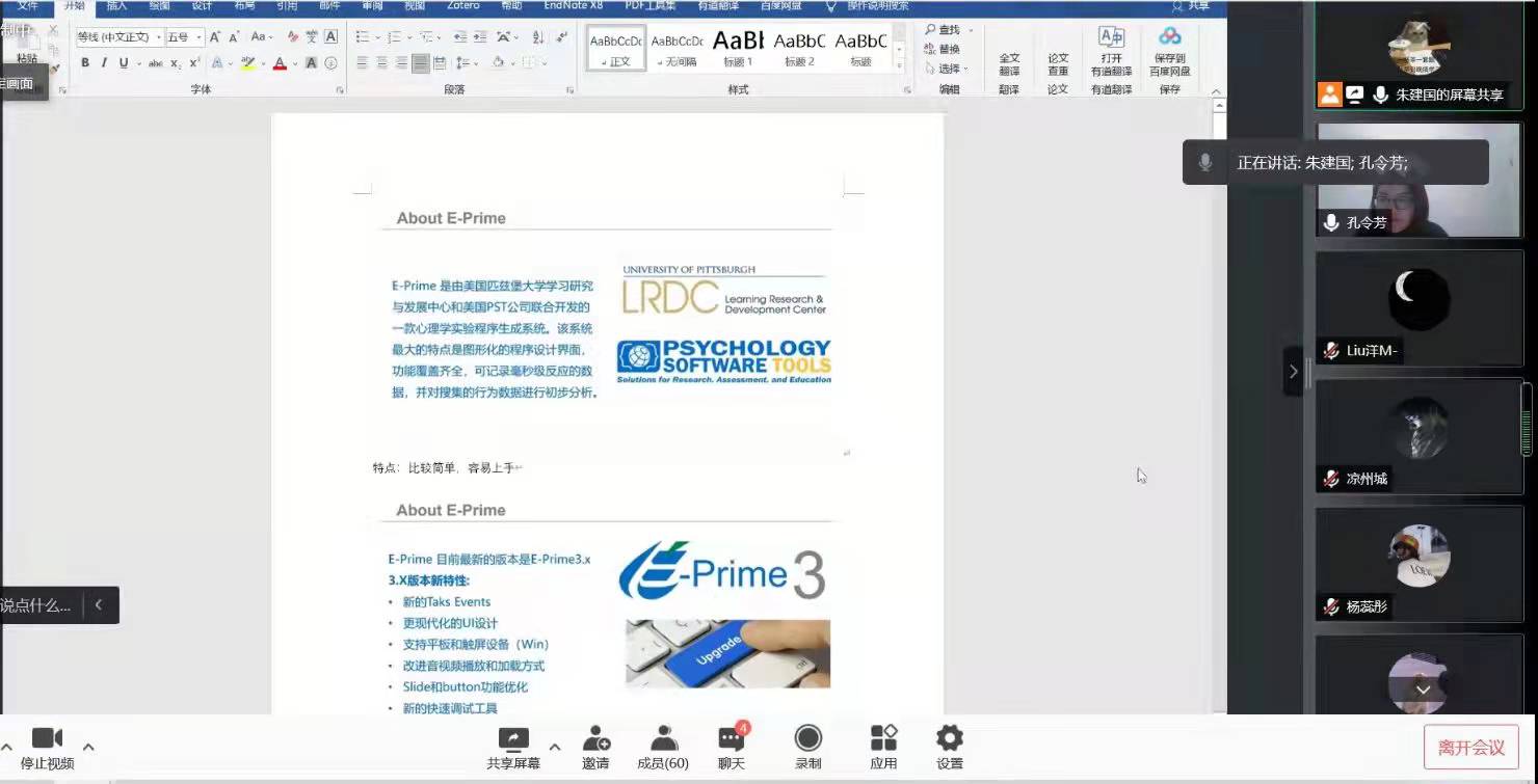1月15日,教师教育学院邀请山东师范大学基础心理学专家张庆云对心理学、心理咨询专业全体学生进行了线上心理实验软件E-prime培训。教师教育学院教师心理学教研室主任孔令芳主持并参加了本次培训。