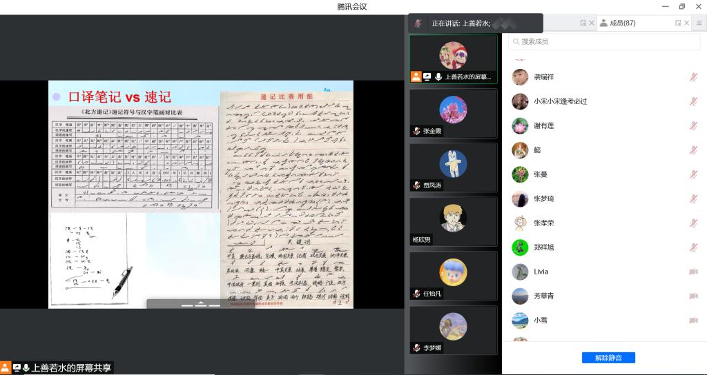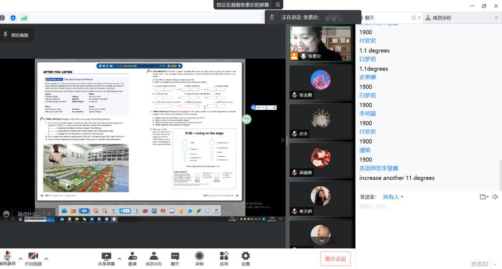 接着,张素珍老师结合所授课程《英语视听说2》从教学分析、教学策略、教学过程等方面分享了自己的教学设计。孔德婧老师围绕充分发挥学生主体作用,加强师生互动的教学理念,分享了《商务英语口译》里关于Note-taking章节的教学反思。学院教学督导充分肯定了两位老师的线上教学,认为她们的教学设计学生学情分析到位,教学思路清晰,课堂师生互动多样,课程思政做到了润物细无声。多位教师就线上教学好的做法,遇到的问题进行了热烈的探讨。新进教师代表刘伟华也表示,两位老师教学风格迥异,各有所长,让新进教师在教学方法和教反思方面收获颇丰。