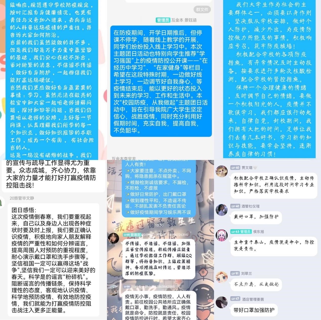 为进一步加强团员青年的责任担当,增强同学们的防疫意识,3月20日,儒商学院团委组织开展了“校园防疫,从我做起”线上主题团日活动。各团支部精心策划、认真组织,全院团员青年线上积极参与。