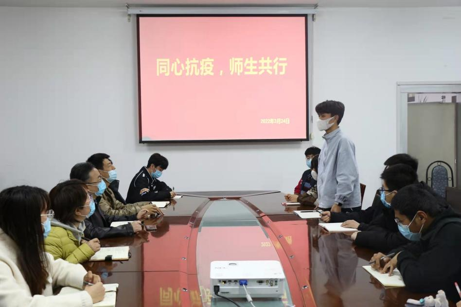 会议首先由各班班长反映封闭管理一周多以来同学们在思想、学习、生活方面存在的问题。马永涛、肖洁、倪召欣三位老师分别有针对性地做出解释和回答,会上解决不了的,记录下来,会后向相关部门反映。随后,李青结合当前疫情防控形势,对同学们提出四点希望和要求:一是在战“疫”时期,同学们要有严明的纪律意识,做到有令必行,令行禁止;二是每位同学应该具备一定的防疫知识和生活常识,加强体育运动,提高自身身体素质和免疫力;三是同学们要增强信念感,要有主人翁意识,相信我们一定会战胜疫情;四是加强自我修养、三省吾身,同时她要求各班班委及时关注同学们的思想动态,提高自身责任感。最后,卫建勋总结发言,他强调希望同学们理解目前的疫情防控工作安排,积极配合核酸检测工作,不提倡各位同学订外卖,坚决不允许各位同学接收快递。他鼓励大家进行身体锻炼,积极调整学习状态,用书籍丰富精神生活,保持乐观向上的积极心态。