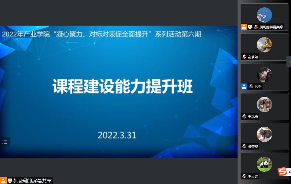 3月31日下午,产业学院通过线上会议召开2022年“凝心聚力、对标对表促全面提升”活动第六期——在线课程建设的准备与资源建设,超新星集团山东分公司编辑赵晓鸣作报告,全体教职工参会。