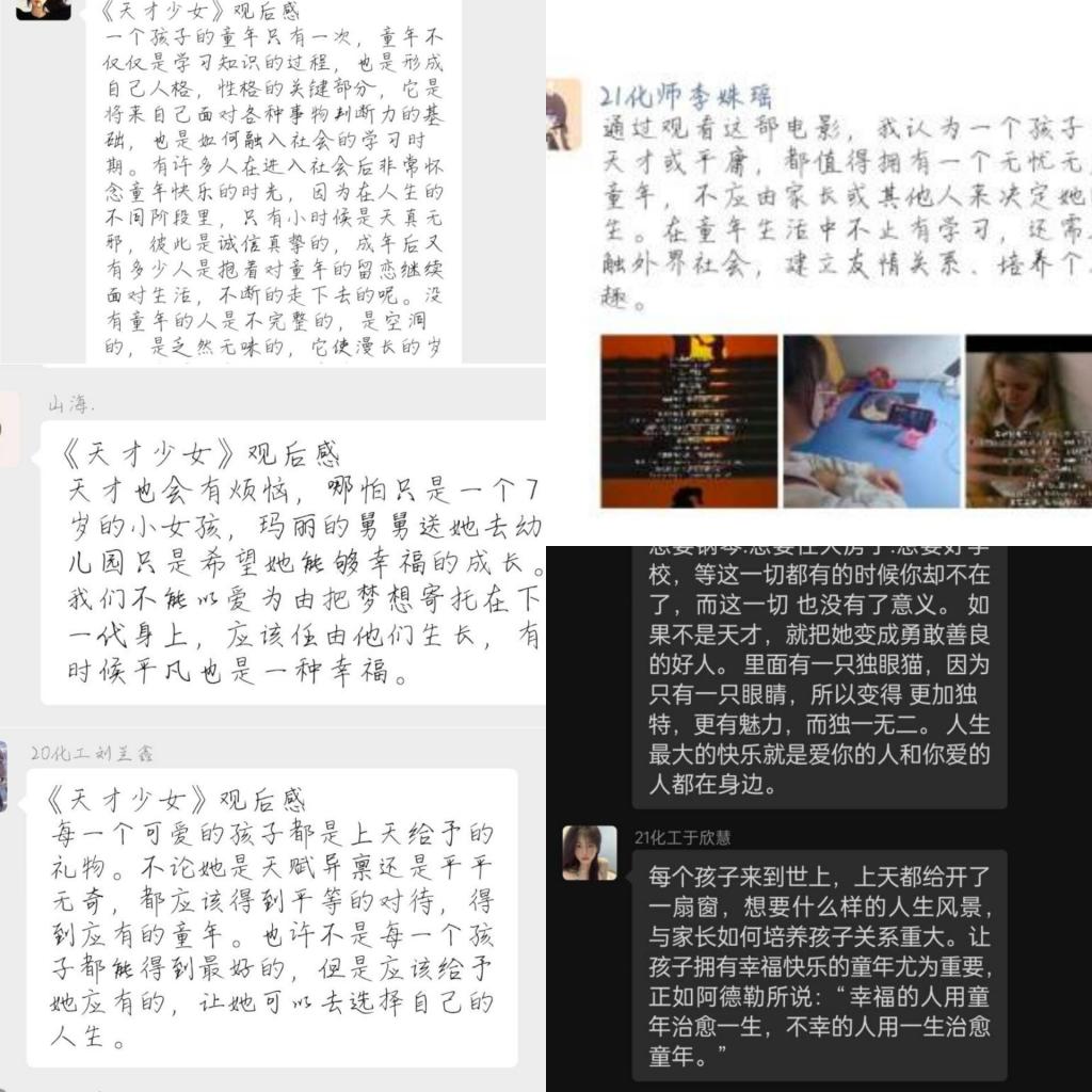 活动伊始,学生们一齐观看了电影《天才少女》,在观看过程中,同学们边看边思考,提出了观影中的一些疑问,活动氛围融洽,进行得井然有序。影片结束后,同学们积极分享自己观影的感受及收获,并根据观影中提出的问题进行讨论。