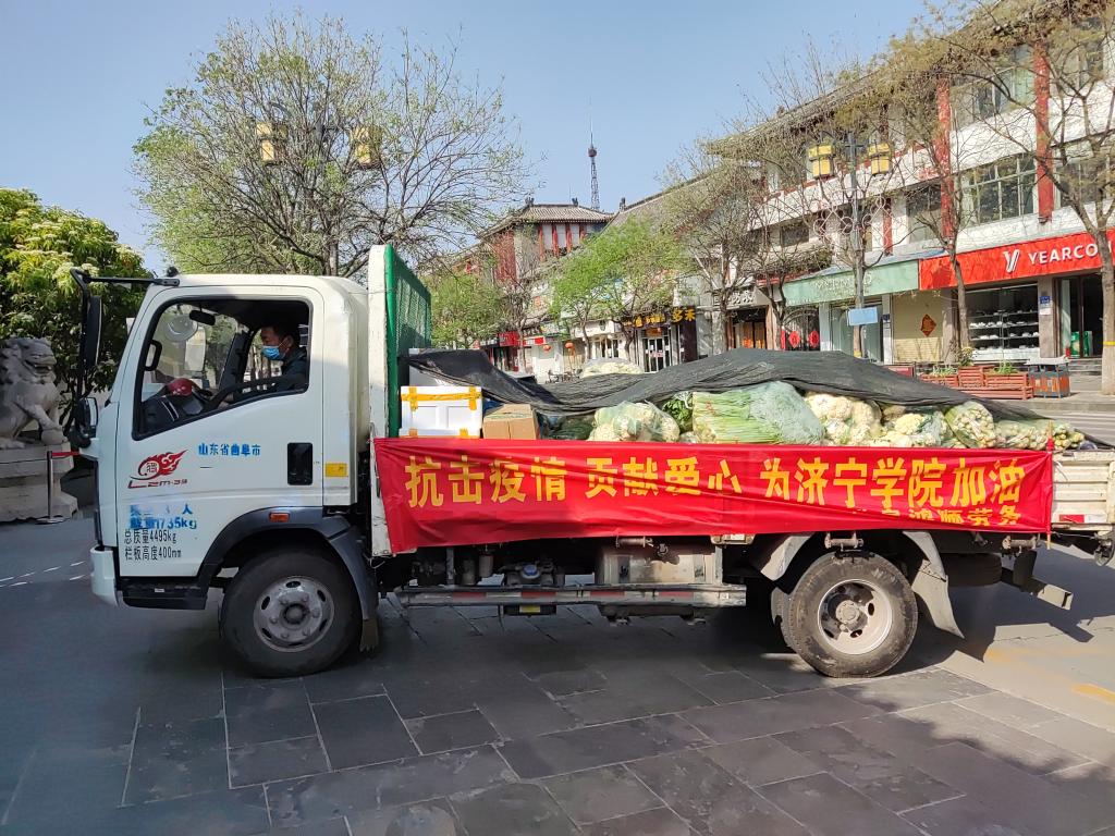 4月10日下午,爱心企业曲阜市鸿顺建筑劳务有限公司总经理李朋,向初等教育学院捐赠鲜蔬菜等生活物资,为学院师生送来了温暖和祝福。