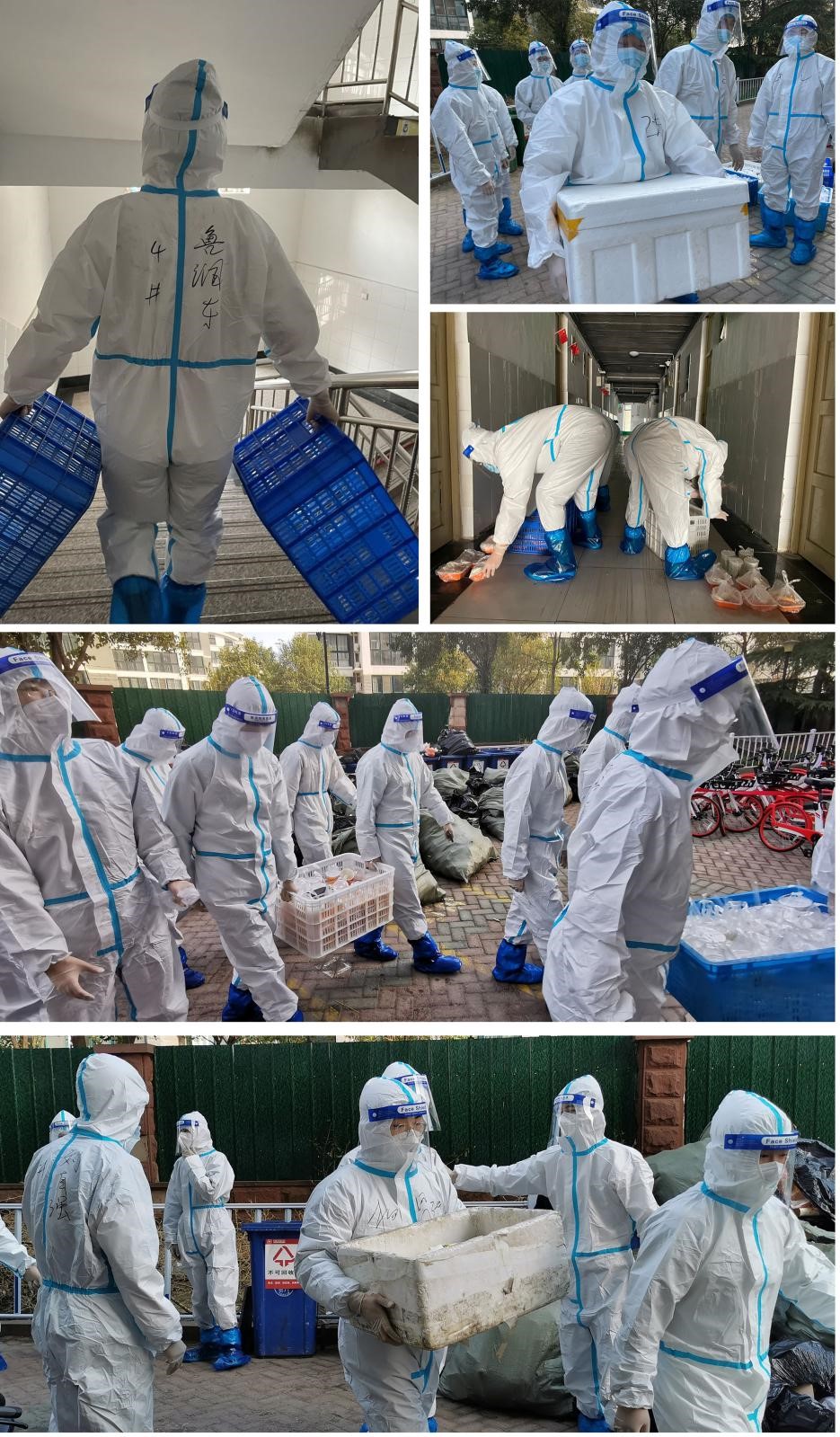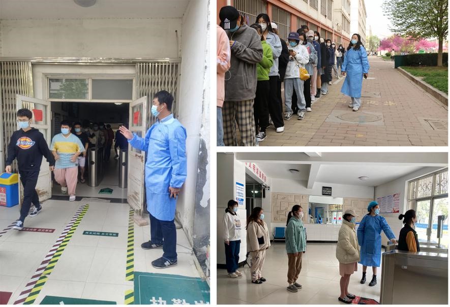 冯秉政、孔晓霞、陈轶洋三名辅导员,兼任学校全员核酸检测的公寓驻楼辅导员,挨家挨户敲门、逐层逐户提醒,组织学生有序检测、化解学生不满情绪,风吹日晒、来回奔波,经常一去就是大半天。而学院其他老师,也毫无怨言地承担起了其它工作。