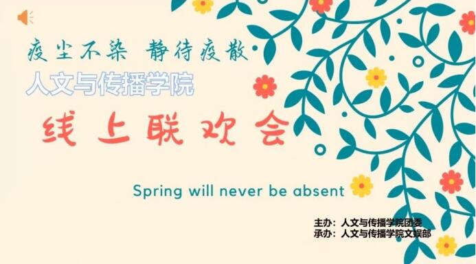 疫情防控是做好一切工作的重中之重,下一步,人文与传播学院将根据属地防疫要求,继续从严从细落实学校疫情防控方案,有序恢复线下教学等各项工作。春风贺喜无言语,排比花枝满校园,全体师生将同向发力,同心抗疫,共克时艰,静待疫散。我们也将努力探索以直播或腾讯会议的形式组织大家团结在一起,以丰富多彩的文艺形式支持抗疫、丰富大家的业余生活。