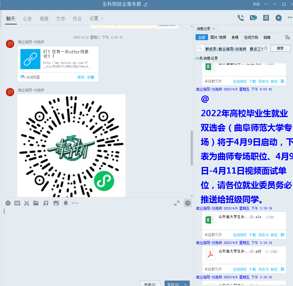坚持以人为本,将解决学生实际困难作为开展心理活动的落脚点和试金石,将好事办实、将实事办好,以实际工作成效守护学生的心理健康。刘学文老师及时转发就业信息,推送相关岗位,主动联系15家企业,组织了5次线上企业宣讲会,共提供岗位70余个,增强学生求职信心;贾春旺老师对考研成绩不理想的学生进行调剂指导,提供调剂学校信息36个,对于考研落榜生进行心理疏导和就业规划,开展谈心谈话20人次,加强人文关怀,缓解就业心理问题。