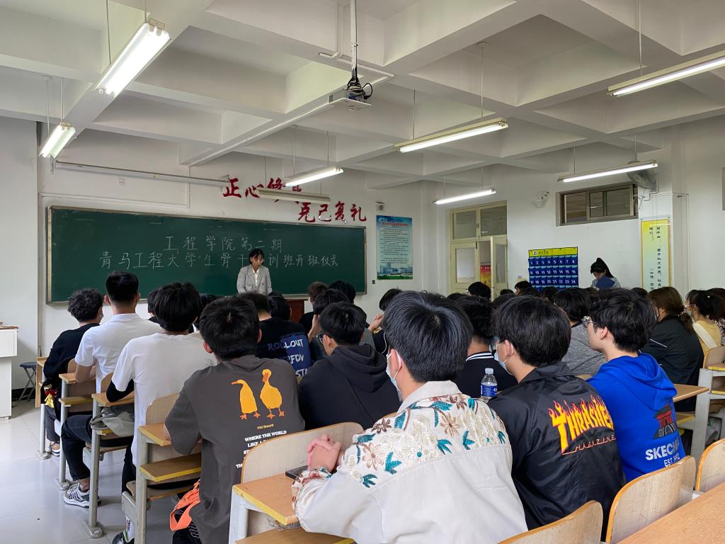 为深入实施青年马克思主义者培养工程,教育引导青年学生做新时代中国特色社会主义的“践行者”,4月21日下午,工程学院在8号楼C206举行了第二期“青马工程”大学生骨干培训班开班仪式暨第一讲。学院党委书记唐秋晶、副书记韩西莲,辅导员姬晴晴、朱海成出席开班仪式。