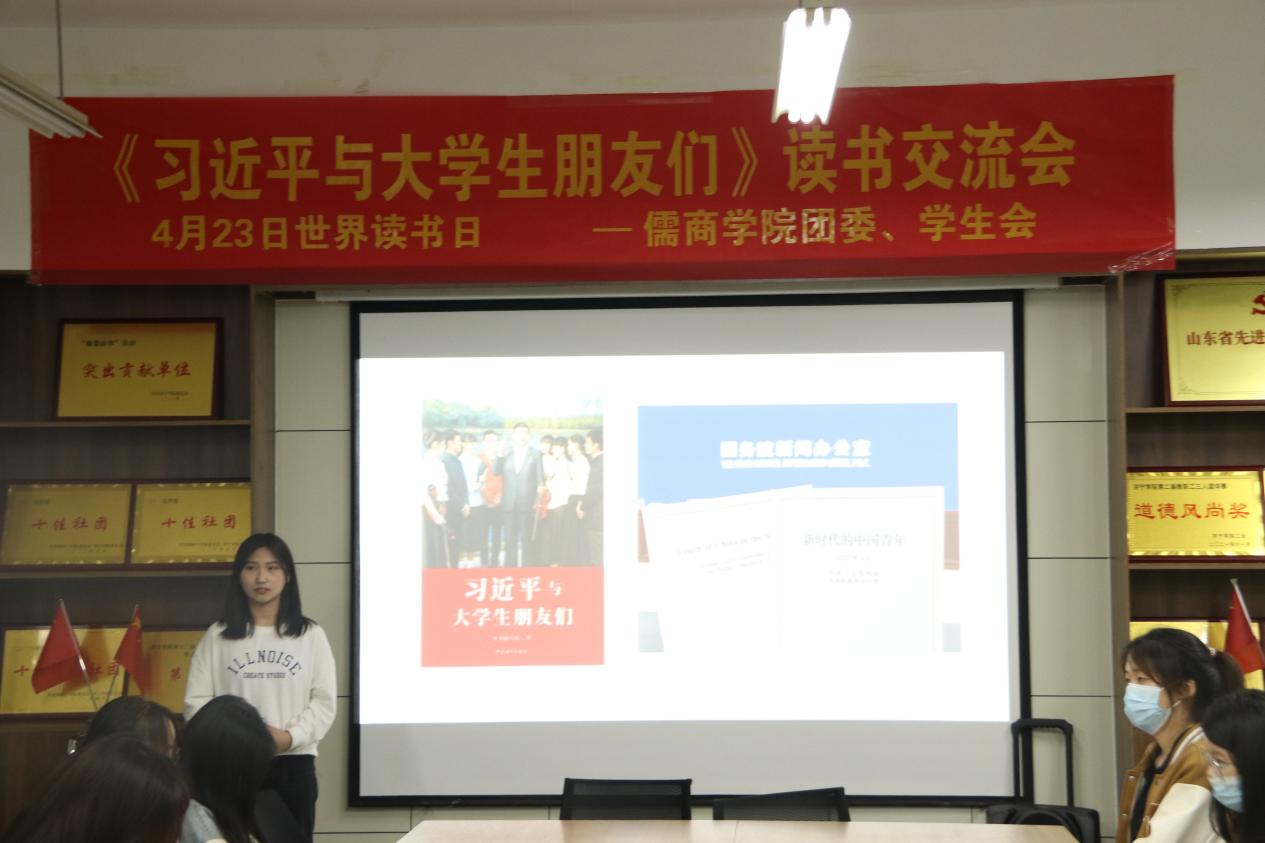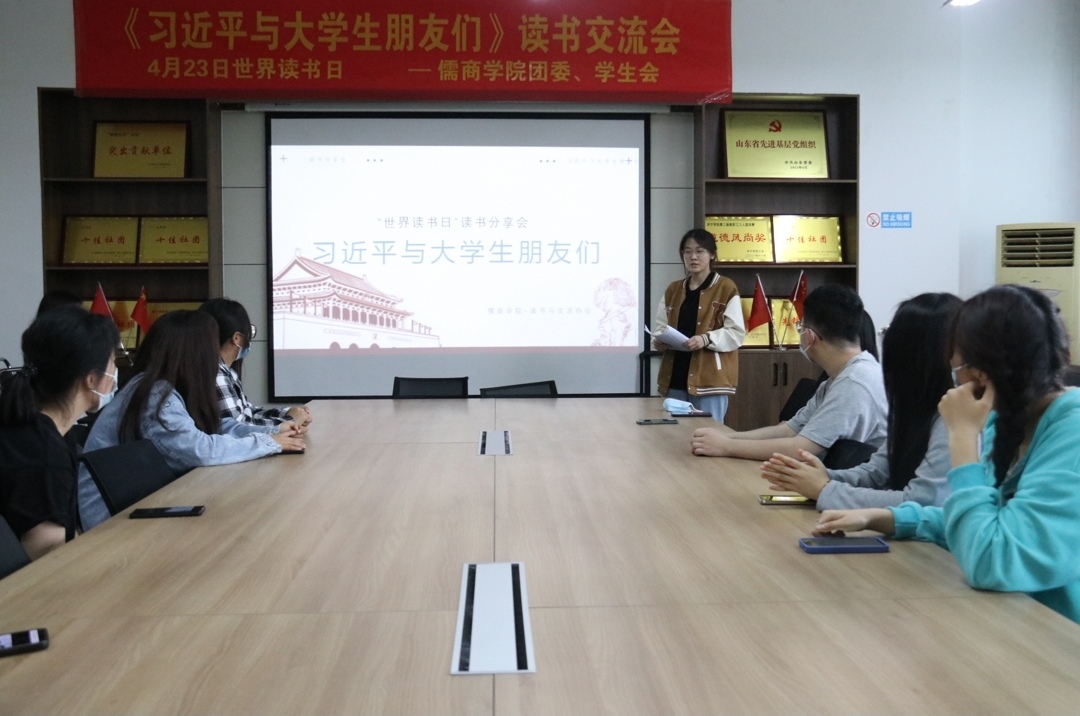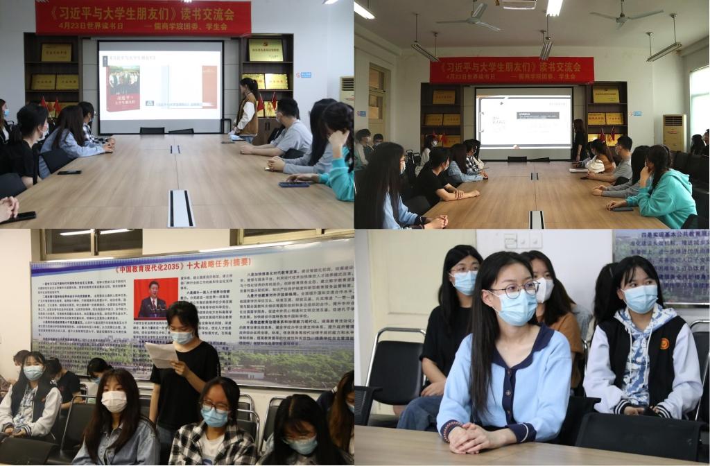 4月23日是第27个“世界读书日”。为迎接中国共产主义青年团成立100周年,深入学习贯彻落实习近平总书记关于青年工作的重要思想和工作要求,推动我校广大青年学生多读书、读好书,儒商学院团委组织读书交流协会、习近平新时代中国特色社会主义思想青年研习社、青年马克思主义研究会等九个社团团支部开展《习近平与大学生朋友们》读书交流会。