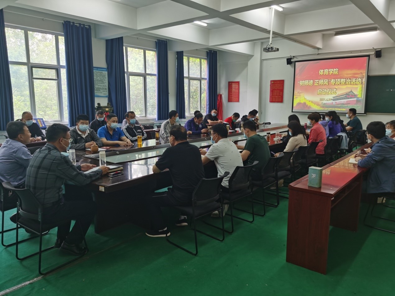 4月25日上午,体育学院组织了“树师德 正师风”专项整治活动启动仪式。该院副院长徐刚主持会议,徐刚宣读了学校开展师德师风专项整治工作实施方案。