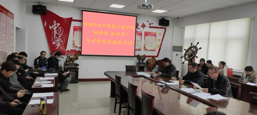 4月28日下午,物理科学与智能工程学院在该院二楼党建活动室召开“树师德 正师风”专项整治活动动员会,学院党委书记孙文、副院长张营、党委副书记李洪波及全体教职工参加会议。会议由孙文主持。