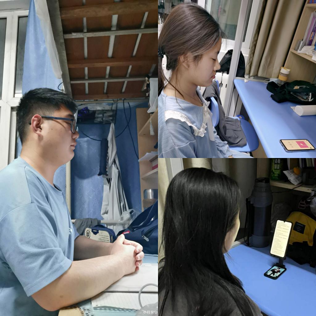 正念(mindfulness),是一种积极、开放式感知当下的状态,指的是“对此时此刻,不评判的有意注意和觉察”。在第一天的活动中,胡从修通过腾讯会议平台向大家介绍了正念的概念以及正念减压的原理,之后每晚带领大家通过静坐冥想、身体扫描、专注力训练、呼吸训练等方式觉察身体、接纳念头、体会当下。
