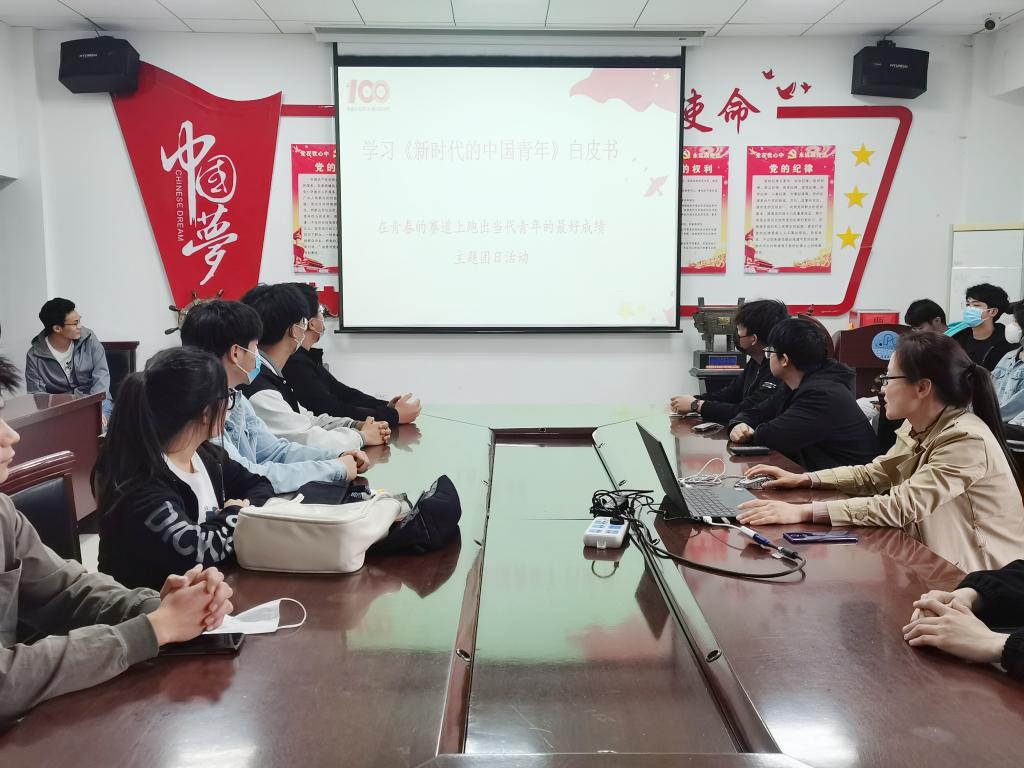 为庆祝中国共产主义青年团成立100周年,弘扬五四精神,在五四青年节即将到来之际,物理科学与智能工程学院开展五四青年节主题教育活动,深入学习习近平总书记在中国人民大学考察时的重要讲话,学习《新时代的中国青年》白皮书,重温入团誓词。活动由该院团委书记赵燕主持,主要学团学生干部参加。