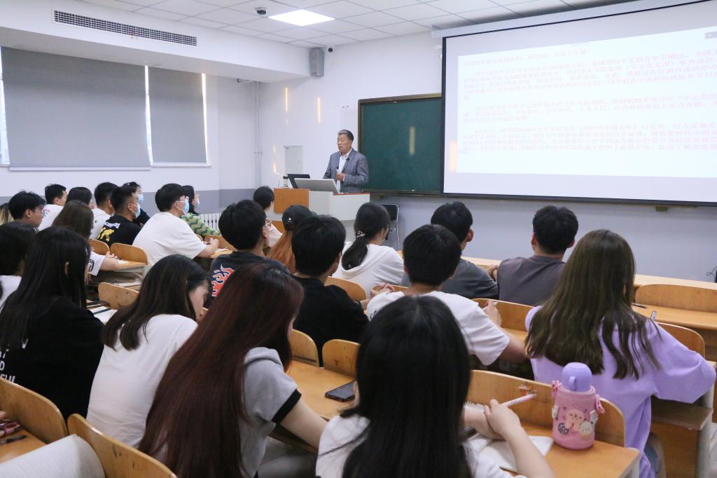 颜景虎以《为国家立心 为民族立魂 扎实做好新时代高校意识形态工作》为题,结合习近平总书记关于意识形态工作的系列重要讲话精神和国际国内意识形态工作典型案例,围绕历史虚无主义、共同富裕、网络安全、中美博弈等热点问题分析了当前意识形态领域存在的各种错误思潮及面临的风险挑战。他从为国家立心、为民族立魂,坚持问题导向、聚焦突出问题,提高斗争意识、增强斗争本领等三个方面强调新形势下做好高校意识形态工作的极端重要性。最后,他要求新时代大学生一定要从自身做起、从现在做起,在意识形态斗争中做到对党忠诚、敢于担当。