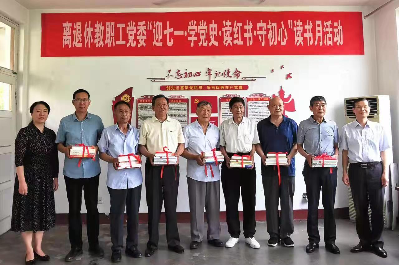 5月27日下午,离退休教职工党委在海关路老干部活动中心举行“迎七一·学党史·读红书·守初心”党员读书月活动启动仪式。离退休教职工党委书记邓新民、离退休工作处处长肖静向7位党支部书记发放了推荐的红色书籍,对读书月活动提出具体要求。