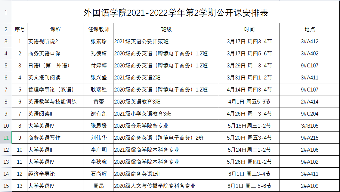 课堂是教师教书育人的主渠道,也是教育教学改革的落脚点。外国语学院历来重视教师课堂教学质量与水平,通过“三层次听课制”保障和促进外语教师教学水平的提高,其中“公开课”活动已成为助力教师专业成长、促进外语专业学科发展的重要举措和优良传统。
