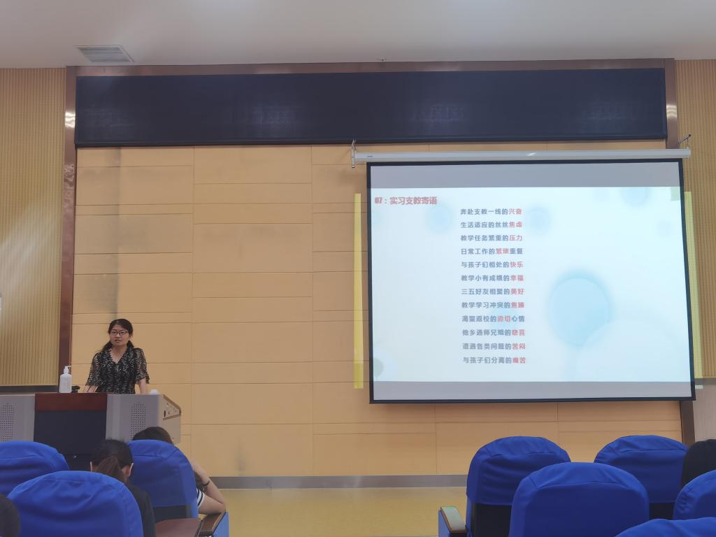 动员会上,单清清针对实习支教的相关政策、支教意义、支教任务、支教安排、组织管理及实习中常见的问题进行了安排部署和详细解读,希望同学们端正实习态度,全面提升专业素养,尽快实现角色转变,积极适应工作环境,以实际行动高质量完成实习支教任务。戴丽丽对实习支教相关材料的填写进行了详细介绍,同时对实习支教期间的各项教学工作进行了安排。刘璐围绕实习安全、疫情防控、组织纪律及实习支教期间的注意事项进行了强调。