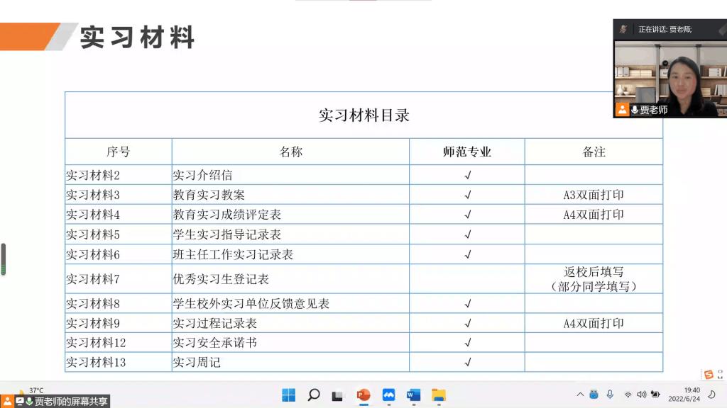 贾英侠从实习支教工作的安排、管理、材料填写、总结等五个方面进行了说明,介绍了实习支教工作的整体情况,并向全体同学提出了以下要求与希望:一是要有“安全意识”,希望同学们在实习支教过程中确保人身、财产、交通等安全,牢记疫情防控相关部署要求;二是要有“身份意识”,希望同学们尽快完成身份转换,珍惜实习机会,严格遵守师德规范,以实际行动践行教育初心,圆满完成实习支教任务;三是要有“问题意识”,希望同学们在实习支教过程中勤于思考,认真探究,理论联系实际,积极推动教育教学问题的解决,不断夯实专业基础,提升专业素养。