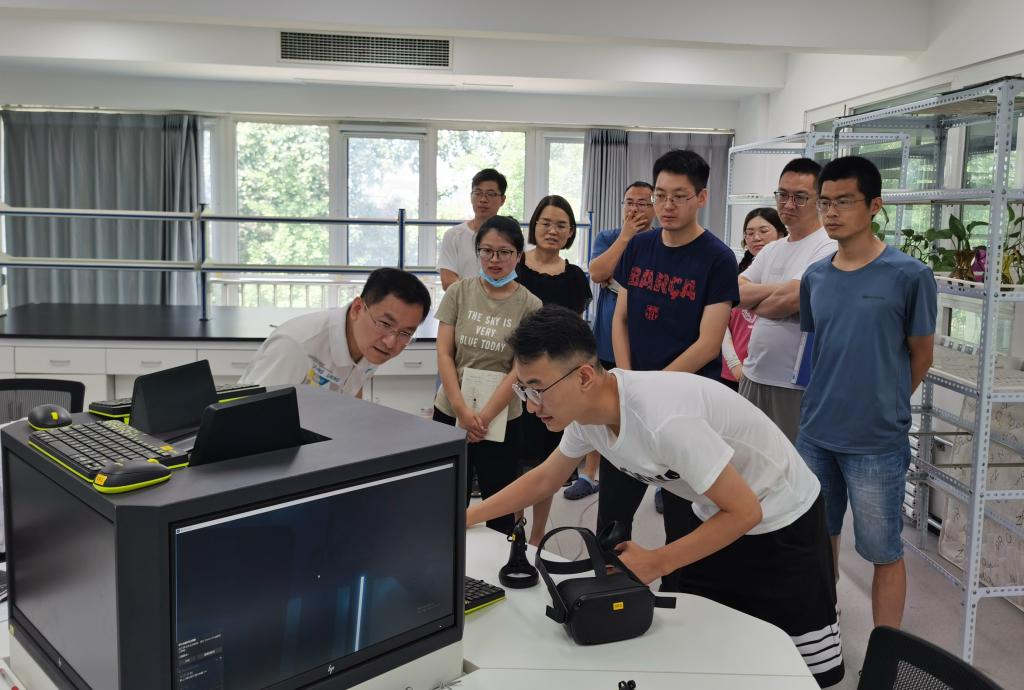 首先,老师们到学校仿真实验中心参观学习,在沉浸式仿真实验室体验了以虚拟现实(Virtual Reality,VR)作为主要技术支撑,采用小间距LED显示屏结合G-Motion动作交互系统为硬件平台的互动虚拟现实系统,在桌面仿真实验室了解了用于多人同时参与的虚拟仿真实验、虚拟仿真教学和虚拟仿真实训系统。随后,老师们到新能源研究院虚拟仿真实验室观摩了学校2021年度重点建设虚拟仿真实验教学一流课程——微藻固定烟气CO2生物质多联产虚拟仿真实验,进一步加深了对虚拟仿真实验教学的了解,并围绕虚拟仿真实验的设计、构建、组织教学进行了交流、讨论。