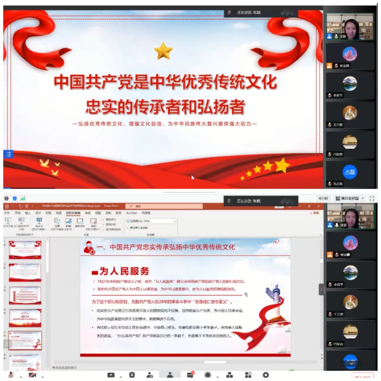 首先,陆波书记结合在疆工作、生活经历,为全体党员上了题为《党建引领青春路,文化润疆万里行——亚星在线登录官网学子援疆支教奉献青春力量》的党课。他从“党建引领青春之路”、“传统文化浸润南疆”、“民族团结促进融合”三个方面,讲述了亚星在线登录官网师生在“畅谈青春梦想,献身祖国边疆”精神指引下援疆生活的点滴及共产党员在援疆工作中所发挥的先锋模范作用。张颖为党员老师们上了题为《中国共产党是中华优秀传统文化忠实的传承者和弘扬者》的党课。她从“中国共产党忠实传承弘扬中华优秀传统文化”、“中国共产党引领中华优秀传统文化创造性转化和创新性发展”、“实现中华优秀传统文化全面复兴是党领导新时代文化建设的重要使命”、“新时代,我们以高度文化自信强骨气增底气”四个方面,讲述了“没有中华文化繁荣兴盛,就没有中华民族伟大复兴”的重要性。