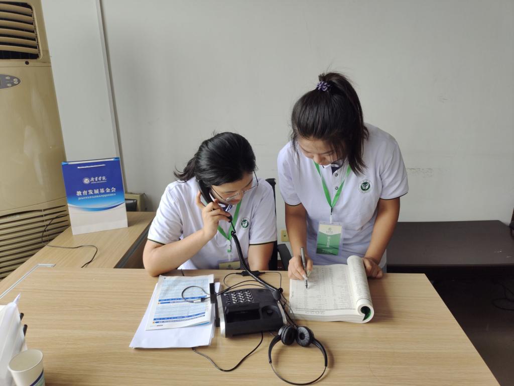 自6月30日起,该院学生刘雨桐、贾宝杰、杨领君自愿组成学校招生宣传小组。经综合培训,通过招生电话与新生建立联系,开展“一对多”、“一对一”精准服务,并积极解答新生网上报到的有关问题,帮助新生做好志愿填报及入学前的准备。