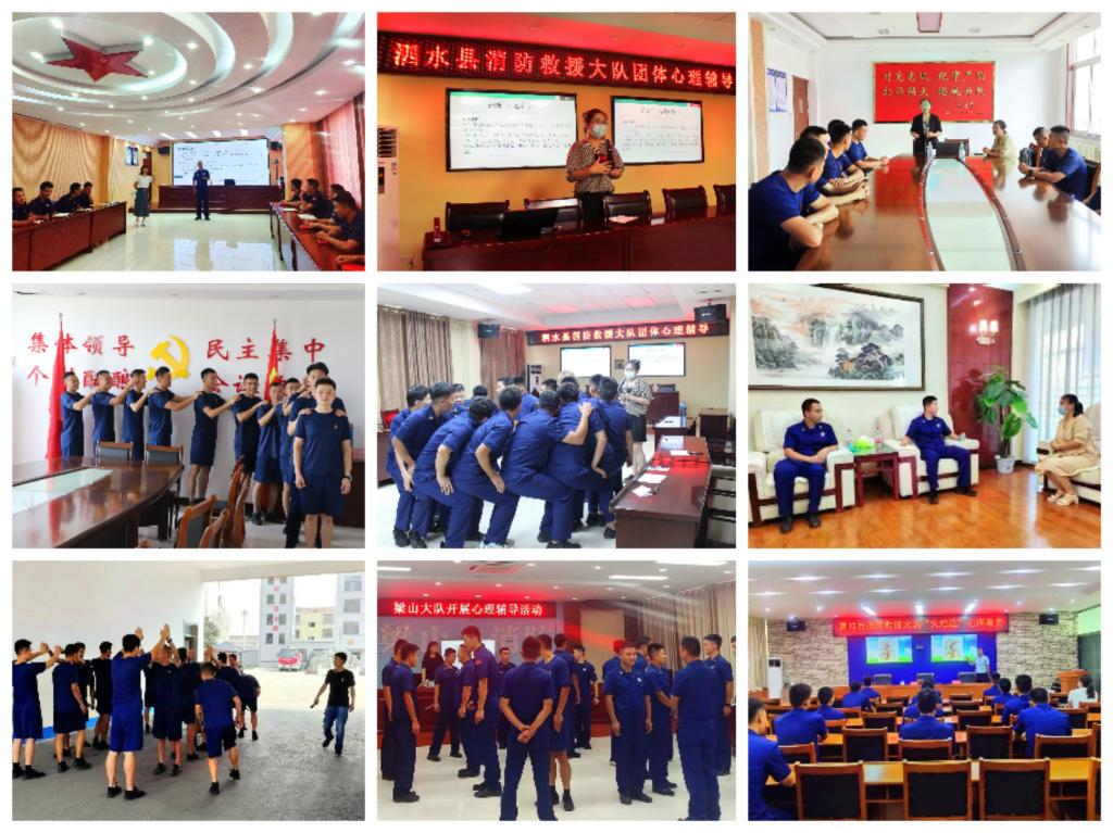 因受疫情影响,全市各消防救援大队的心理服务工作主要集中在暑假完成。自7月1日至8月2日,我校心理服务专家团队13名成员精心准备,通力合作,分工负责,克服天气炎热、路途遥远等困难,陆续走进全市15个消防救援大队开展心理服务工作。专家们根据各大队消防指战员的心理诉求和实际情况,认真准备专题内容和团体活动方案。服务内容聚焦工作压力、人际关系、心理创伤、应激障碍、恋爱婚姻、心理健康、亲子教育、危机干预等方面,采用专题讲座、团体活动、心理测试、个体咨询、案例分析、小组讨论、感悟分享、视频观赏等形式,专业化的心理服务受到了各大队的高度评价。