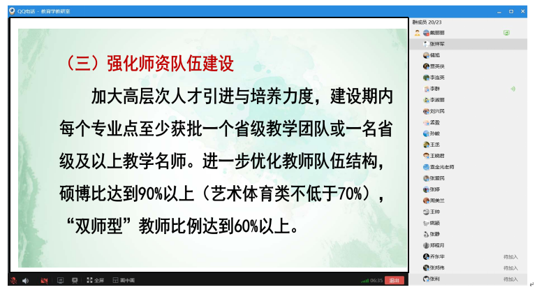 8月12日下午,教师教育学院以线上方式召开小学教育省级一流本科专业建设研讨会,会议由该院教育学教研室主任戴丽丽主持,该专业全体教师参加。